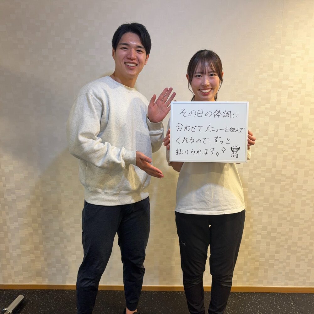 通っていただくお客様のお悩みは様々です。がんばりすぎないオリジナルメニューで、姿勢や身体のゆがみを整え、正しく動ける身体づくりを目指します。ぜひ一度お気軽に体験にお越しください。
